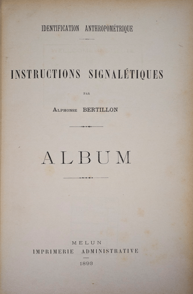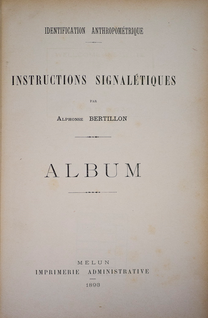 Title Page Published September 16, 2013 at 673 × 1027 in Identification Anthropométrique, Alphonse Bertillon, 1893; Guest Post by Morbid Anatomy