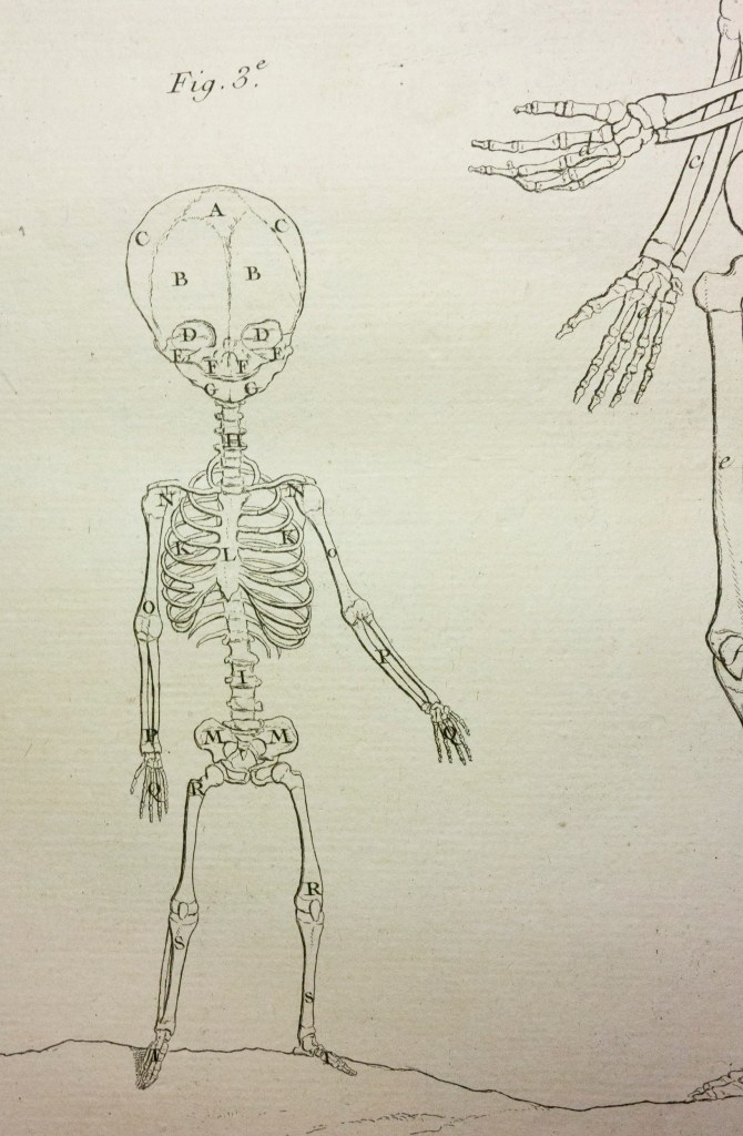 Monro6 Published October 4, 2013 at 1635 × 2499 in Winsome Fetal Skeletons Bearing Scythes: Monro’s Traité d’ostéologie of 1759: Guest post by Morbid Anatomy Monro 6