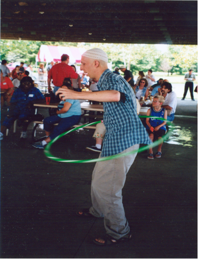 Brian Lobel competing in the Indiana University-Purdue University Indianapolis Hospital Stem Cell Transplant Reunion Picnic Hula Hoop Contest.