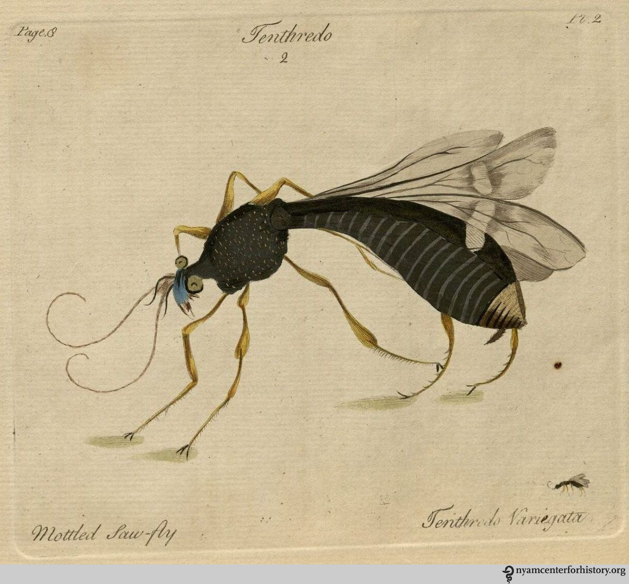 Hill_Mottled Saw-fly_watermark Published June 19, 2014 at 1225 × 1137 in A Gallery of Gauzy Wings (Item of the Month) Plate 2, Tenthredo variegata, the mottled saw-fly.