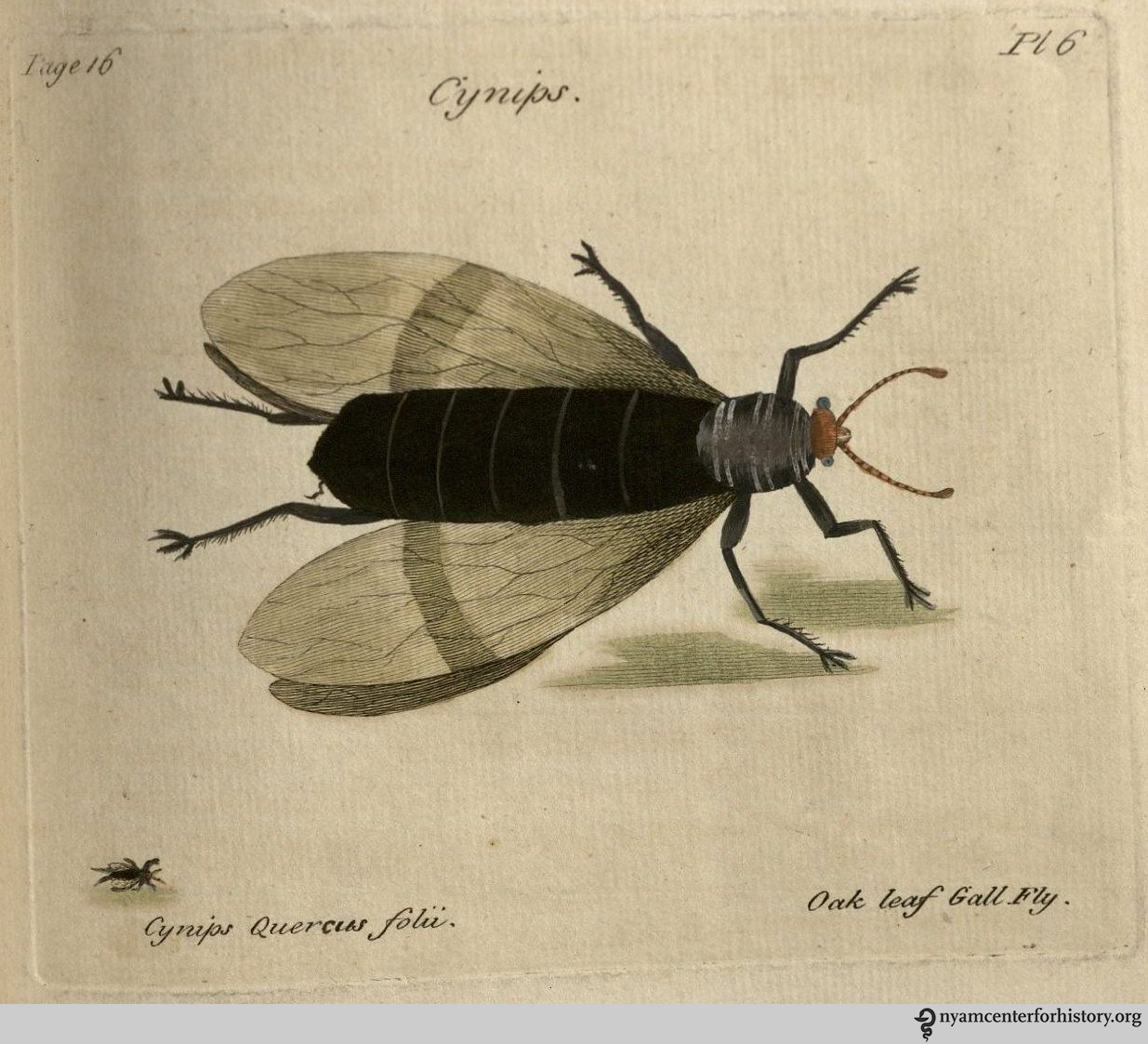 Hill_Oak leaf gall fly_watermark Published June 19, 2014 at 1235 × 1123 in A Gallery of Gauzy Wings (Item of the Month) Plate 6, Cynips Quercus folii, the oak leaf gall fly.