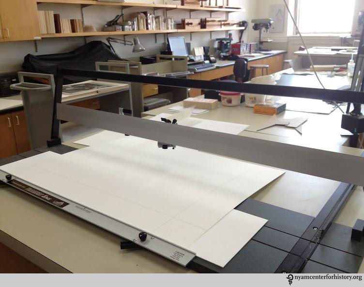MatCutting_watermark Published September 30, 2014 at 752 × 592 in Dusting off a Treasure: Cleaning and Rehousing the Ladd Collection Cutting new mats.