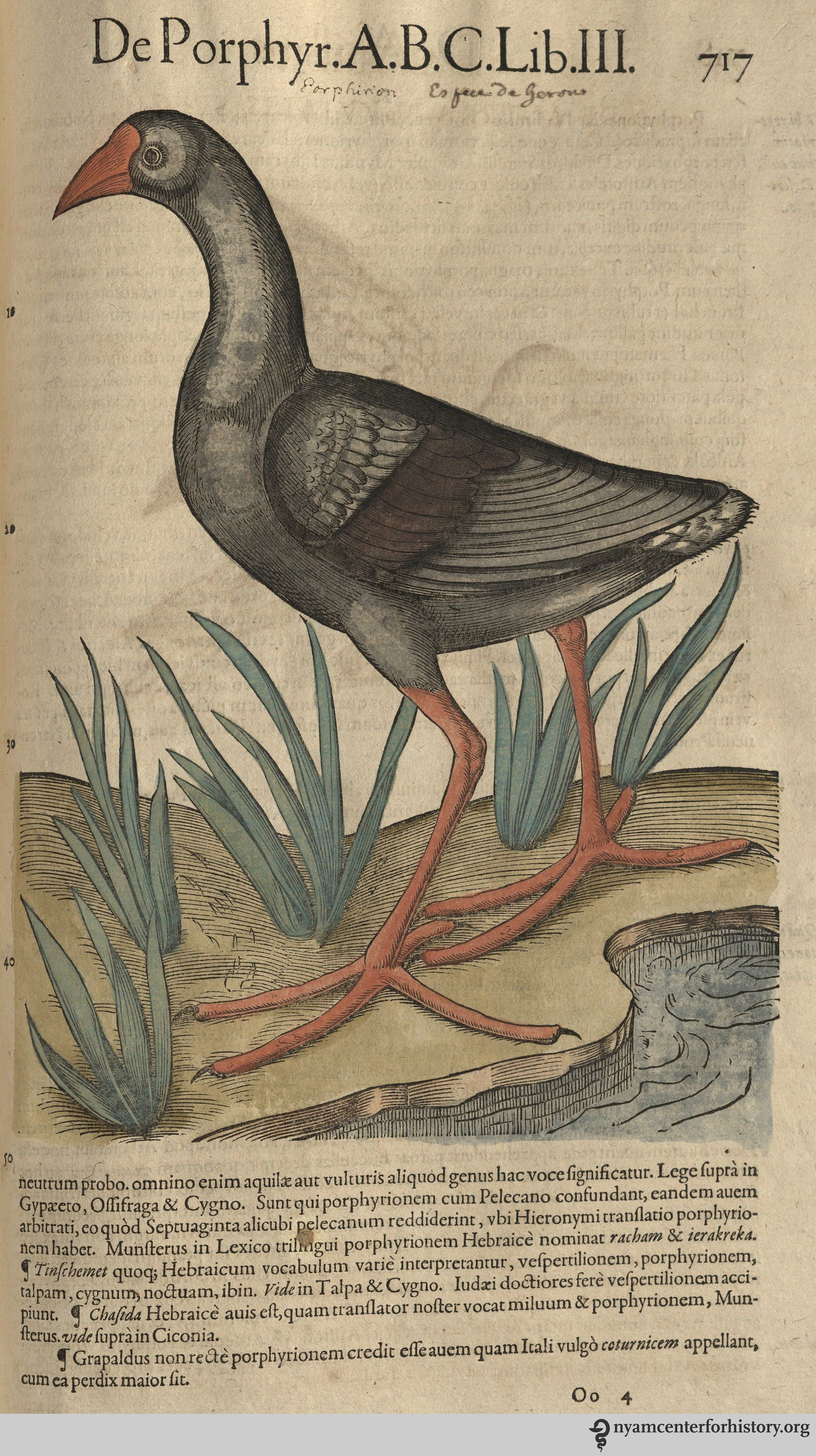 Gesner_historiae_v3_1585_717_watermark Published March 26, 2015 at 2144 × 3827 in Happy Bird-day, Conrad Gesner (Item of the Month) Purple swamphen? from Gesner’s Historia Animalium, Liber III.