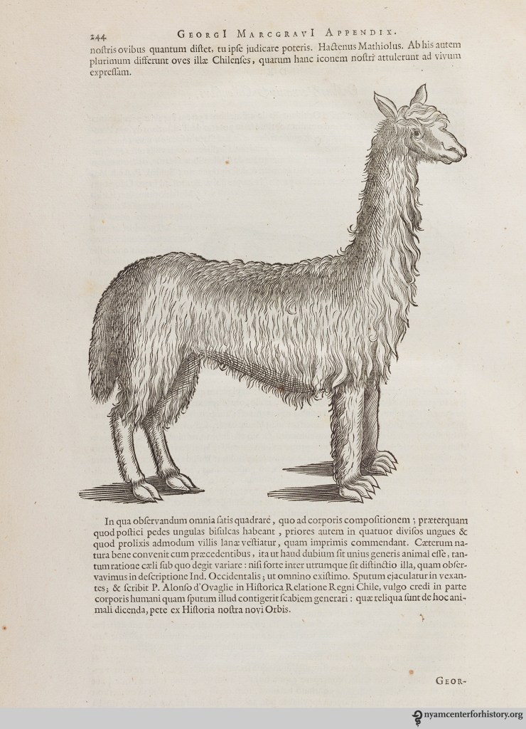 piso_historianaturalisbrasiliae_1648_244_watermark Published April 9, 2015 at 1488 × 2060 in Brazil, Richly Illustrated Llama or Peruvian sheep? Historia naturalis Brasiliae, 1648, page 244.