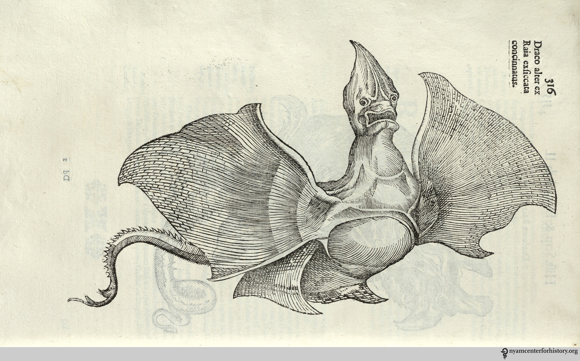 Aldrovandi1640 316_watermark Published April 23, 2015 at 2000 × 1244 in The Dragons of Aldrovandi A dragon made of dried-out fish parts, page 316.