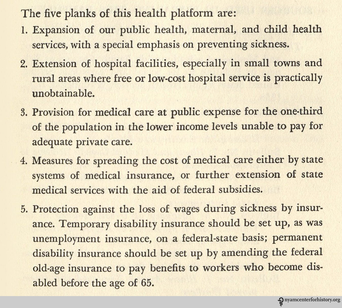 The conference laid out five recommendations from a commissioned report of the Technical Committee on Medical Care, entitled the Need for a National Health Program: