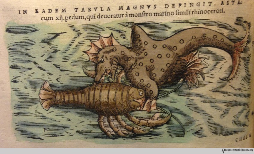 Gesner_HistoriaeAnimalium_v4_1558_p118_watermark Published October 15, 2015 at 1290 × 786 in Merman or Mandrake? Costume Ideas From Our Collection An idea for a couple’s costume: One could be the lobster, the other the sea monster. From Gesner’s Historiae animalium, vol. 4, 1558. More sea monsters on our Facebook page.