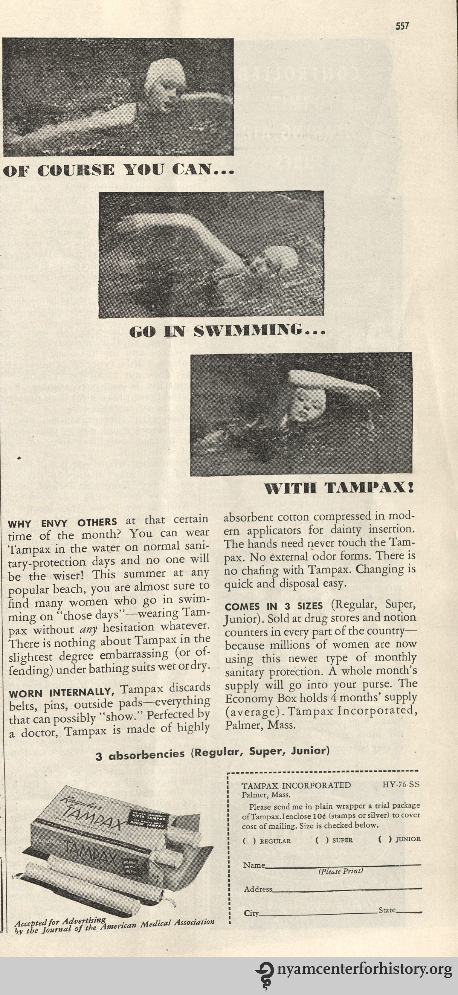 Tampax_Hygeia_July1946 _watermark Published March 2, 2016 at 1532 × 3328 in “Solving Woman’s Oldest Hygienic Problem in a New Way”: A History of Period Products Tampax ad in Hygeia Magazine, July 1946. Click to enlarge.
