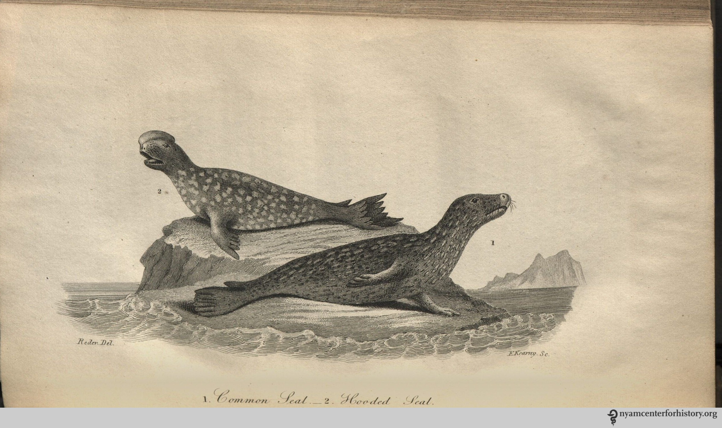 Common and hooded seals from Volume I of Godman’s American Natural History, 1826-1828. Click to enlarge.