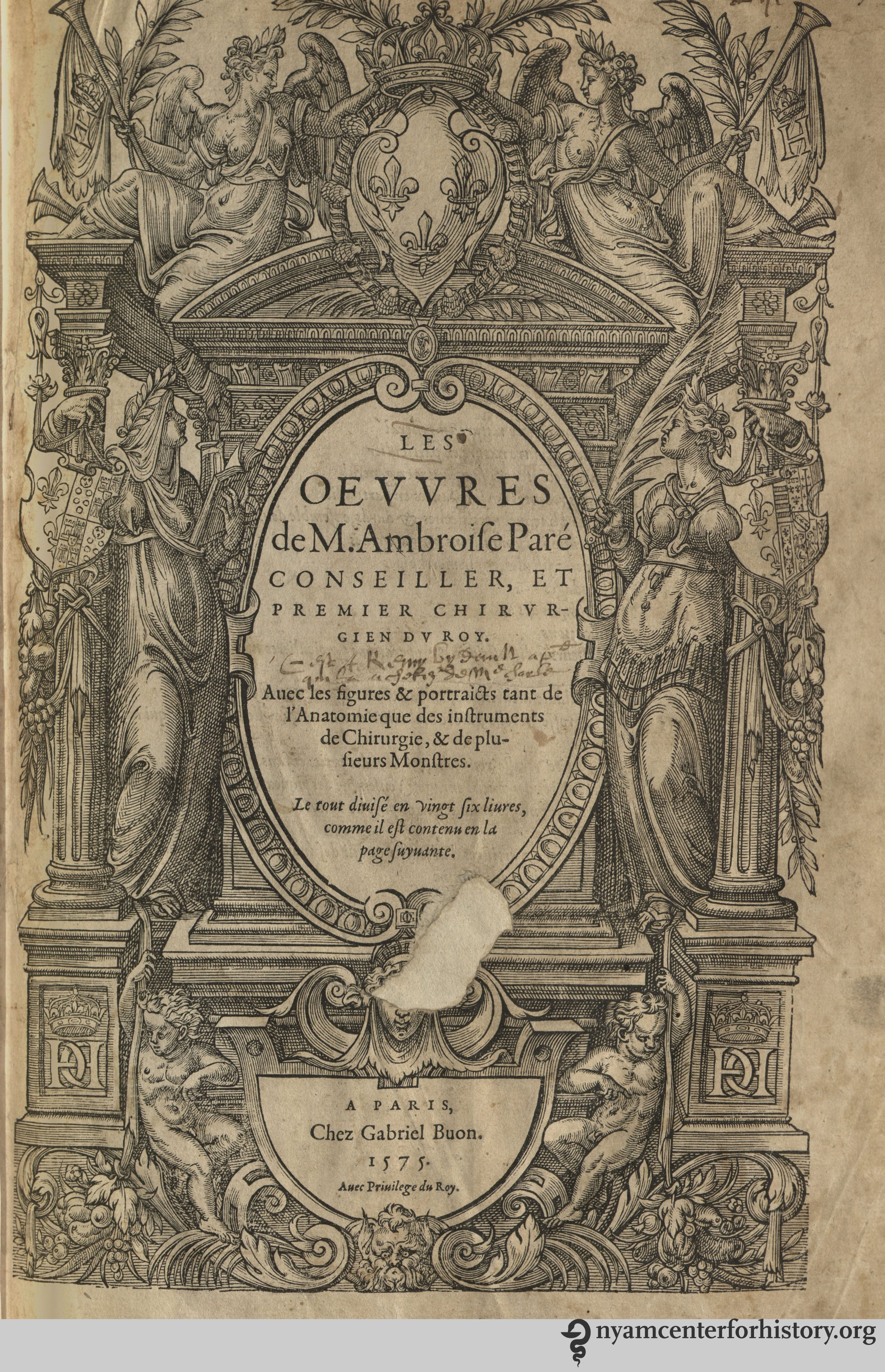 iii. Paré defended his publication with a written defense and in the Parisian courts. While the verdict was not recorded, the book went on sale and sold out almost immediately. See Wallace B Hamby, Ambroise Paré, Surgeon of the Renaissance (St. Louis: W.H. Green, 1967), pp153-156.