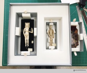 Among many enclosures I have made so far this year, the boxes for our collection of 17th-century anatomical manikins are the most memorable. I cut and built up Ethafoams and Volara foams so that the trays of manikins would fit perfectly in the boxes. It was challenging, but there was a lot of learning and discussion with other conservation and library staff in the process. Check out our blog post about the manikins and the rehousing! –Yungjin Shin, Collections Care Assistant