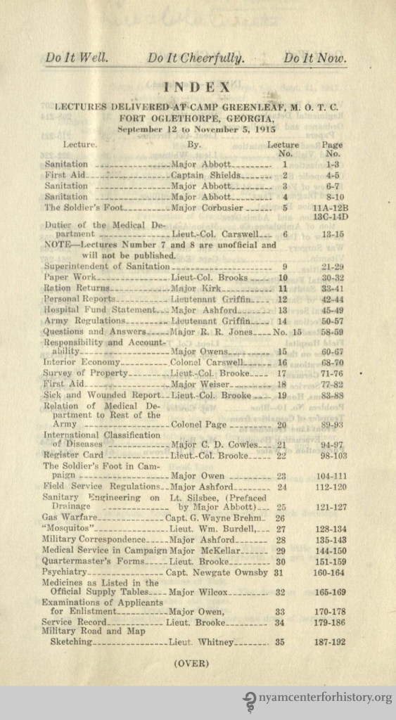 CharlesTerryButler_IndextoDuties_watermark Published December 4, 2018 at 1056 × 1921 in Charles Terry Butler: An American Doctor in World War I Index to MOTC training lectures and notes. Image: Charles Terry Butler papers, New York Academy of Medicine.