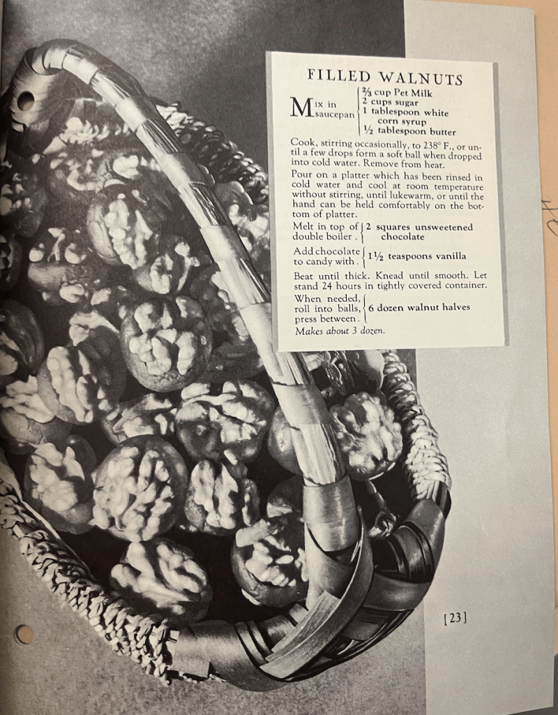 Any of these recipes featured can be replicated today. Pet Milk may not have the panache it once had but it is still available. Other brands of condensed milk can also be substituted. We cannot confirm or deny whether the lack of “flavor crystals” will impact the taste. You might want to make a couple batches just in case….