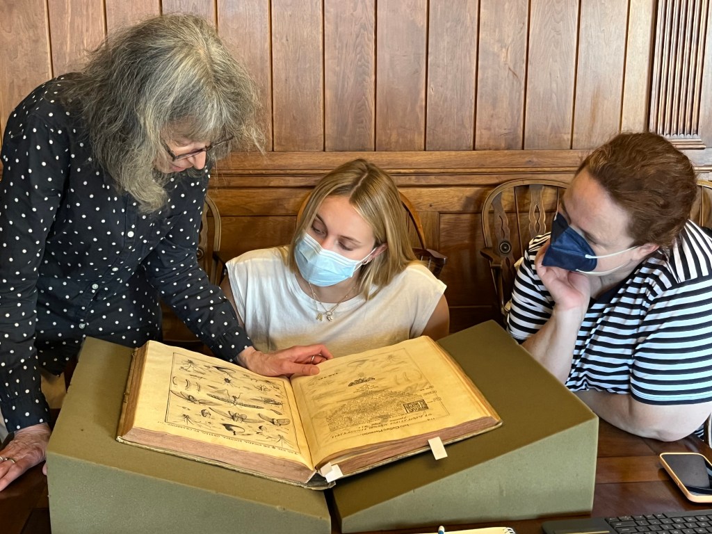 Our program is fortunate enough to visit the library three times during the May course. During the first two meetings, students trace a history of illustrated medical and scientific texts, learning under Arlene’s guidance about how print technology, art, circulation, and scientific understanding have unfolded over the centuries. Moving from Vesalius to 20th-century popular media, our students understand from first-hand experience how information has been created, copied, and circulated, especially in a pre-digital world.