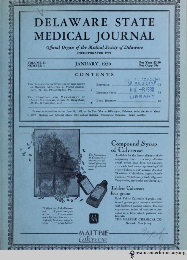DelawareStateMedJ_Jan1930_volIIn1_watermark Published February 22, 2016 at 630 × 876 in DelawareStateMedJ_Jan1930_volIIn1_watermark Cover of the Delaware State Medical Journal, volume III number 1, January 1930.