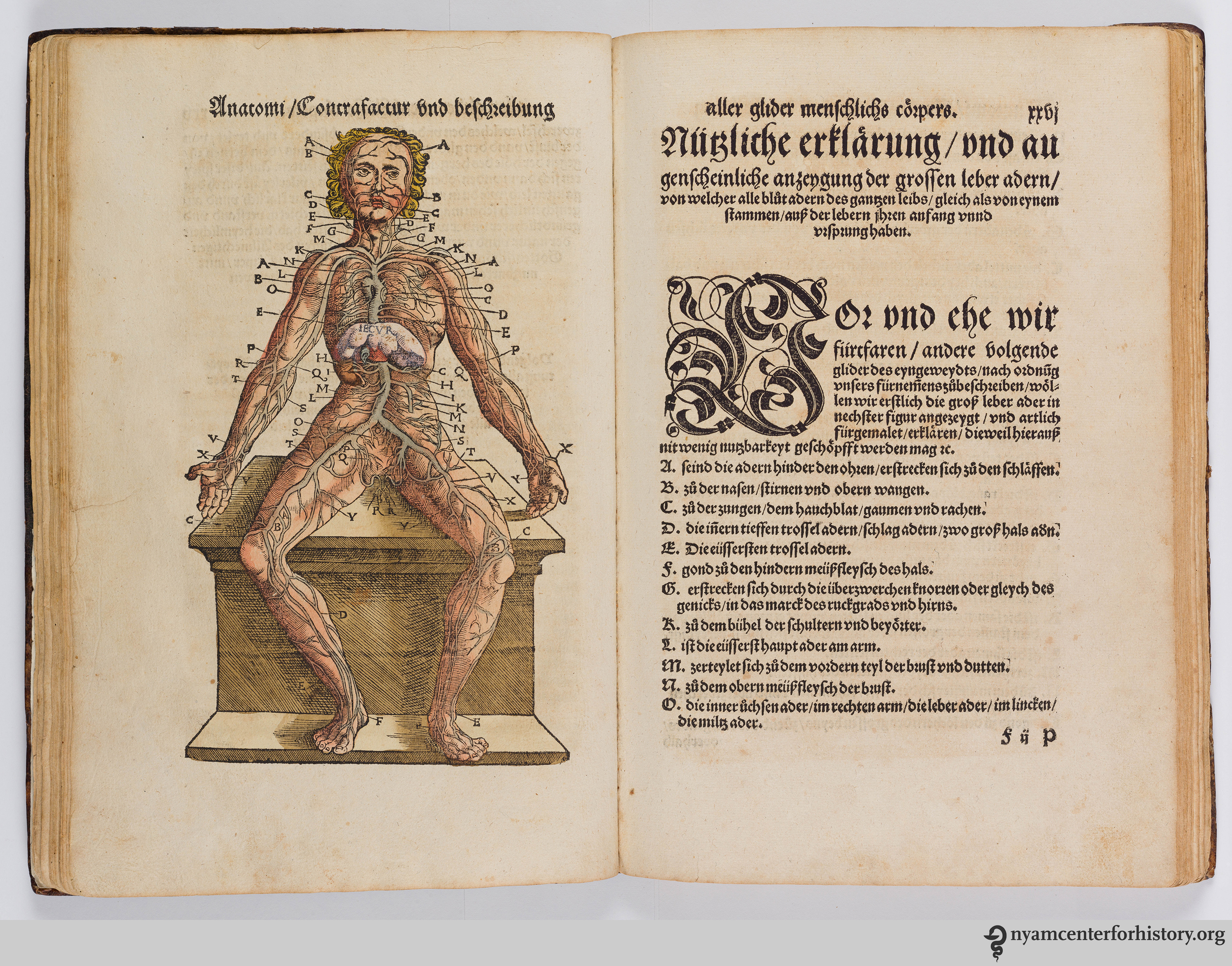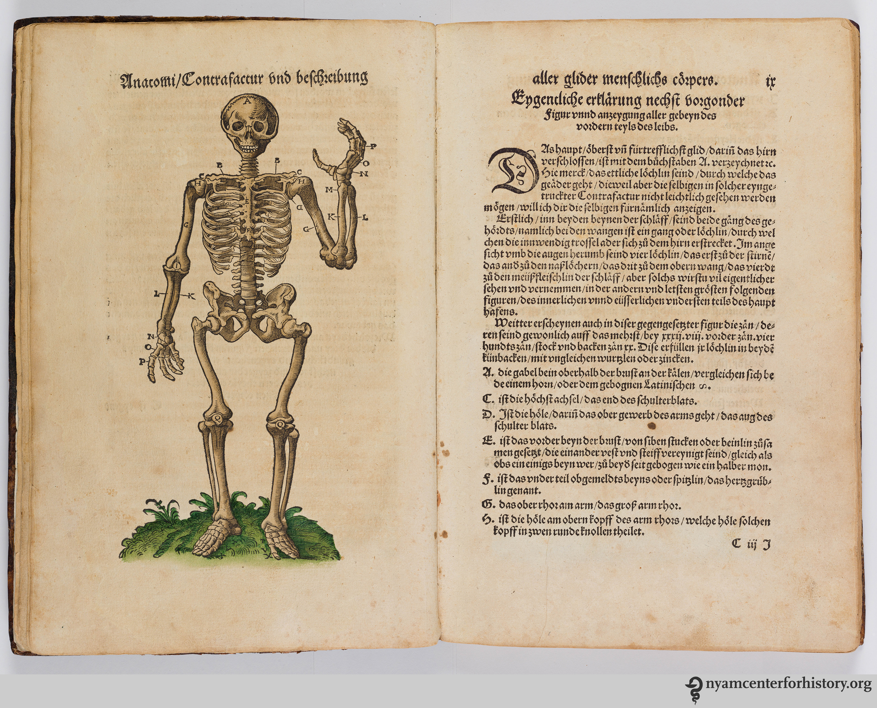 The Academy soon acquired two other copies of the 1543 Vesalius, one from the Edward Clark Streeter Collection and the other from Dr. Samuel Lambert, as well as two copies of the 1555 second edition. In fact, editions of Vesalius and related works soon became a major research strength of the collection, continue to be heavily used by readers, and are frequently shared with visiting groups and classes.